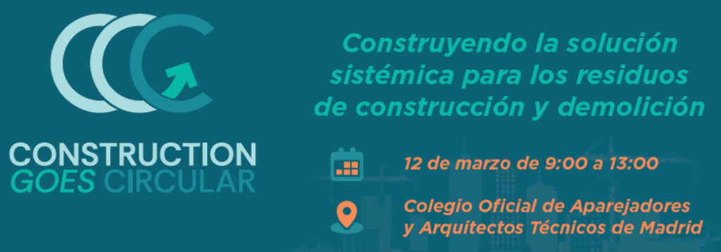 El próximo jueves día 12 de marzo se celebrará en el Colegio Oficial de Aparejadores y Arquitectos Técnicos de Madrid una jornada bajo el título “Construyendo la solución sistémica para los residuos de construcción y demolición” en la que se abordará el gran reto que supone la necesidad de acelerar la circularidad en el sector de la construcción. Se trata de una jornada para compartir soluciones y debatir e identificar retos, con ponencias, diálogosectorial y un espacio final de networking.