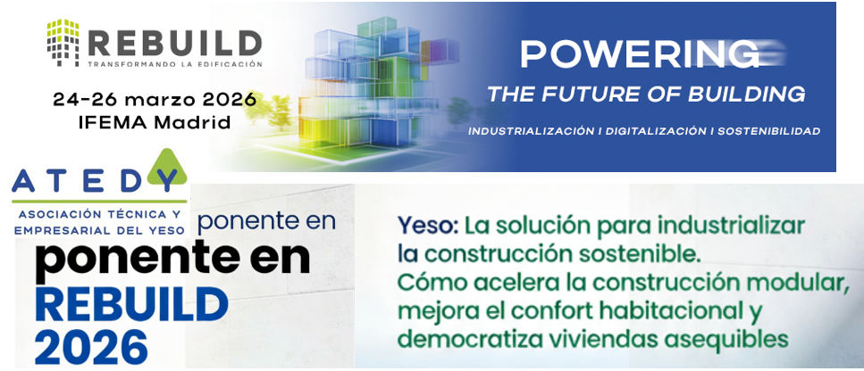 ATEDY será ponente en REBUILD 2026: para informar sobre “Yeso, la solución para industrializar la construcción sostenible”